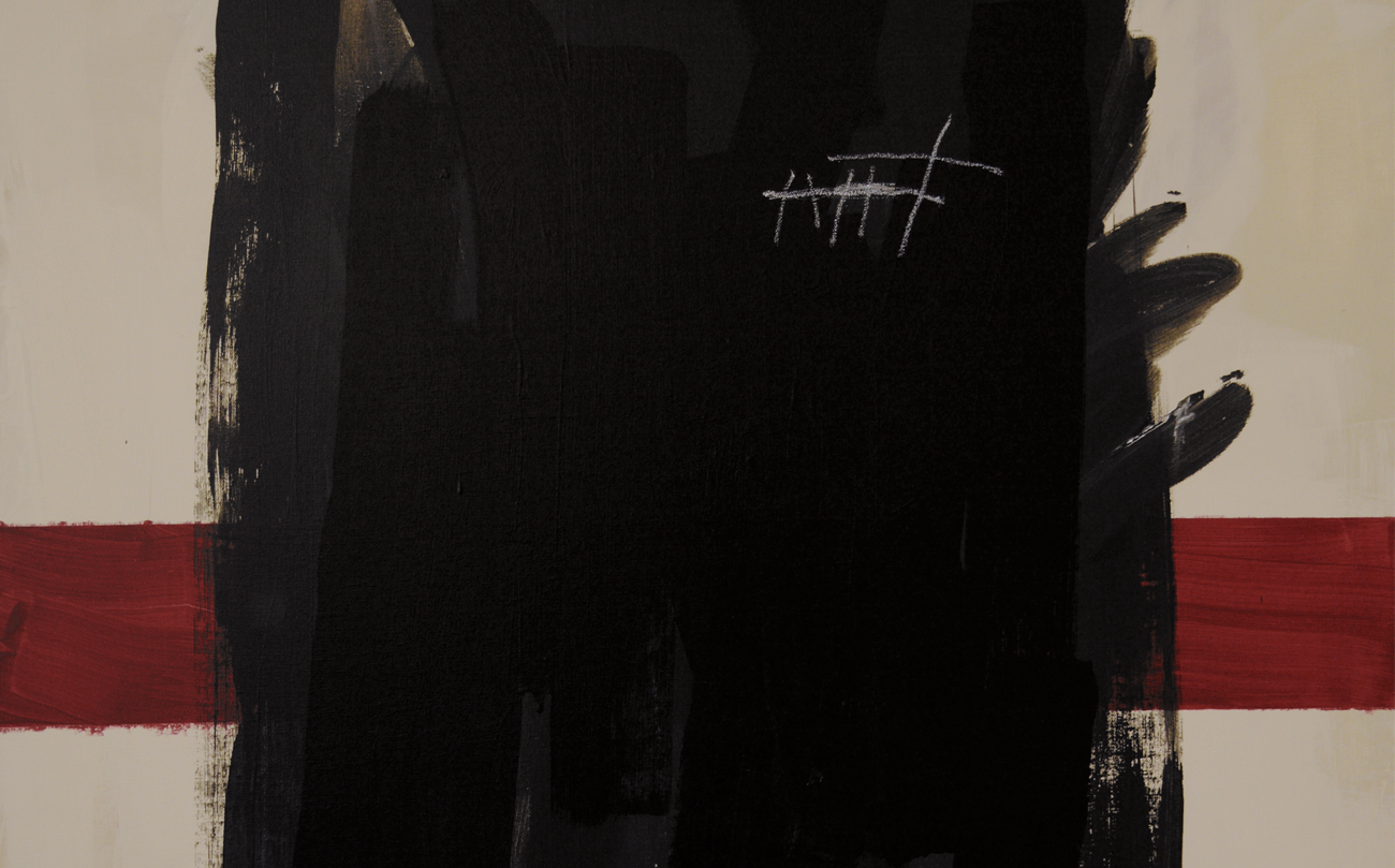 Santiago created this original painting in 2022. He utilized materials including hand-applied gesso, acrylics, oil pastel, and charcoal.